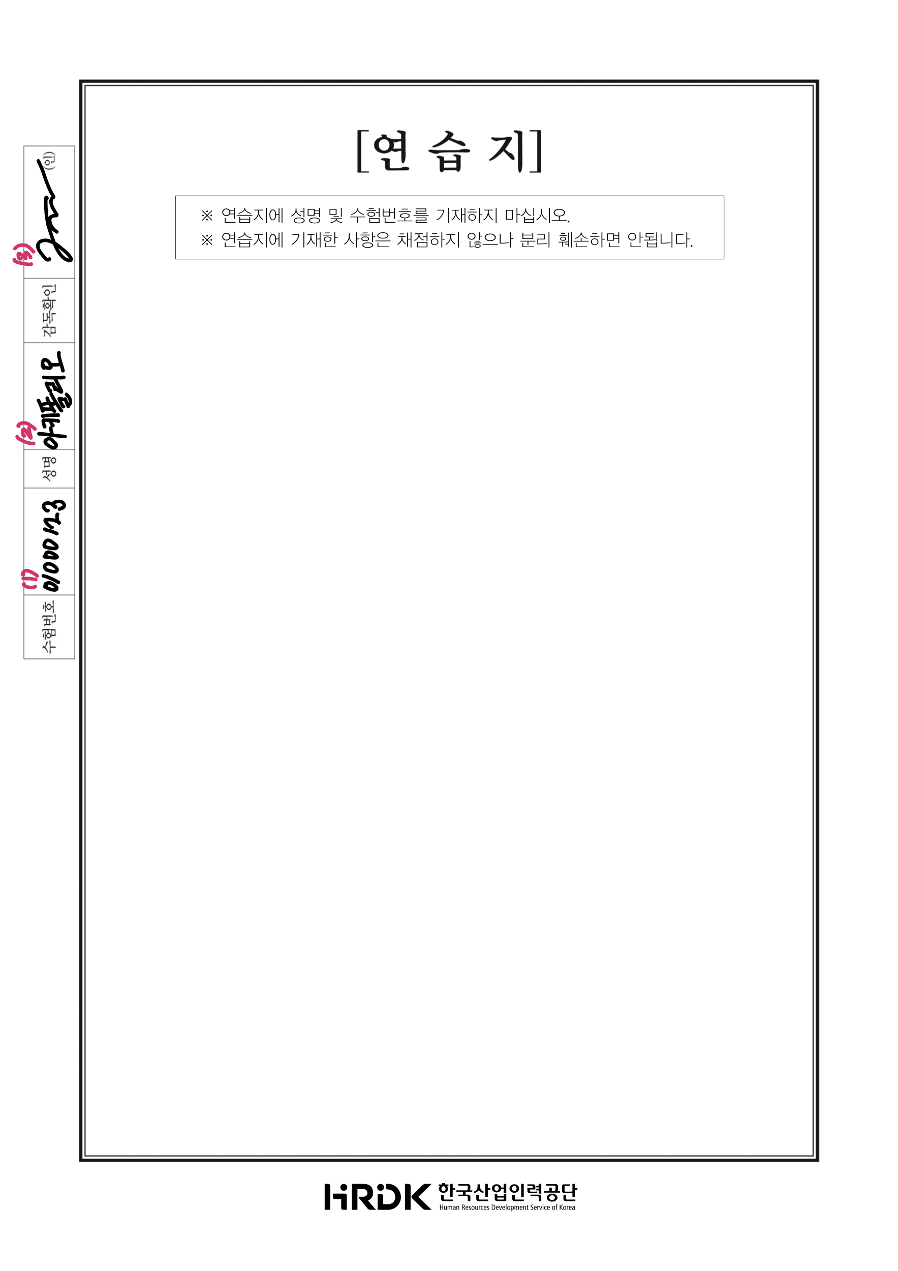 본 포스팅에도 첨부해 놓았으니 공부하시는 분들 참고하시길 바랍니다. 실제 출력해서 답안지 작성 연습을 하셔도 좋습니다.