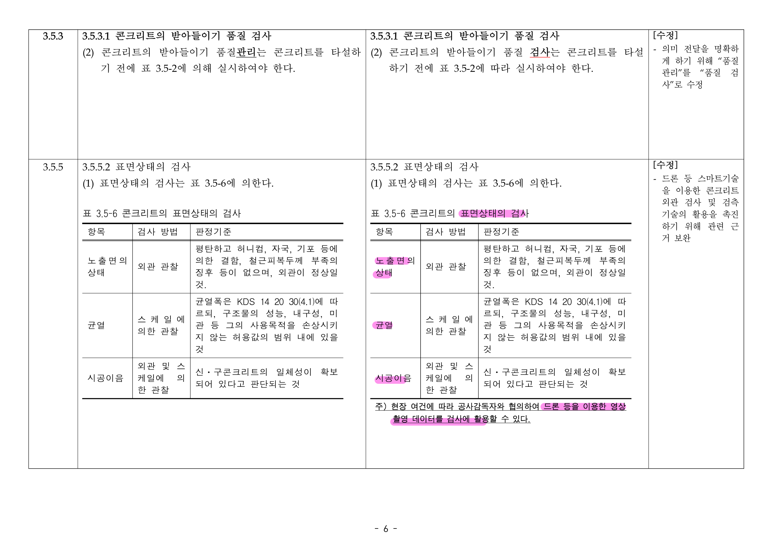- 드론 등 스마트기술을 이용한 콘크리트 외관 검사 관련 근거 보완