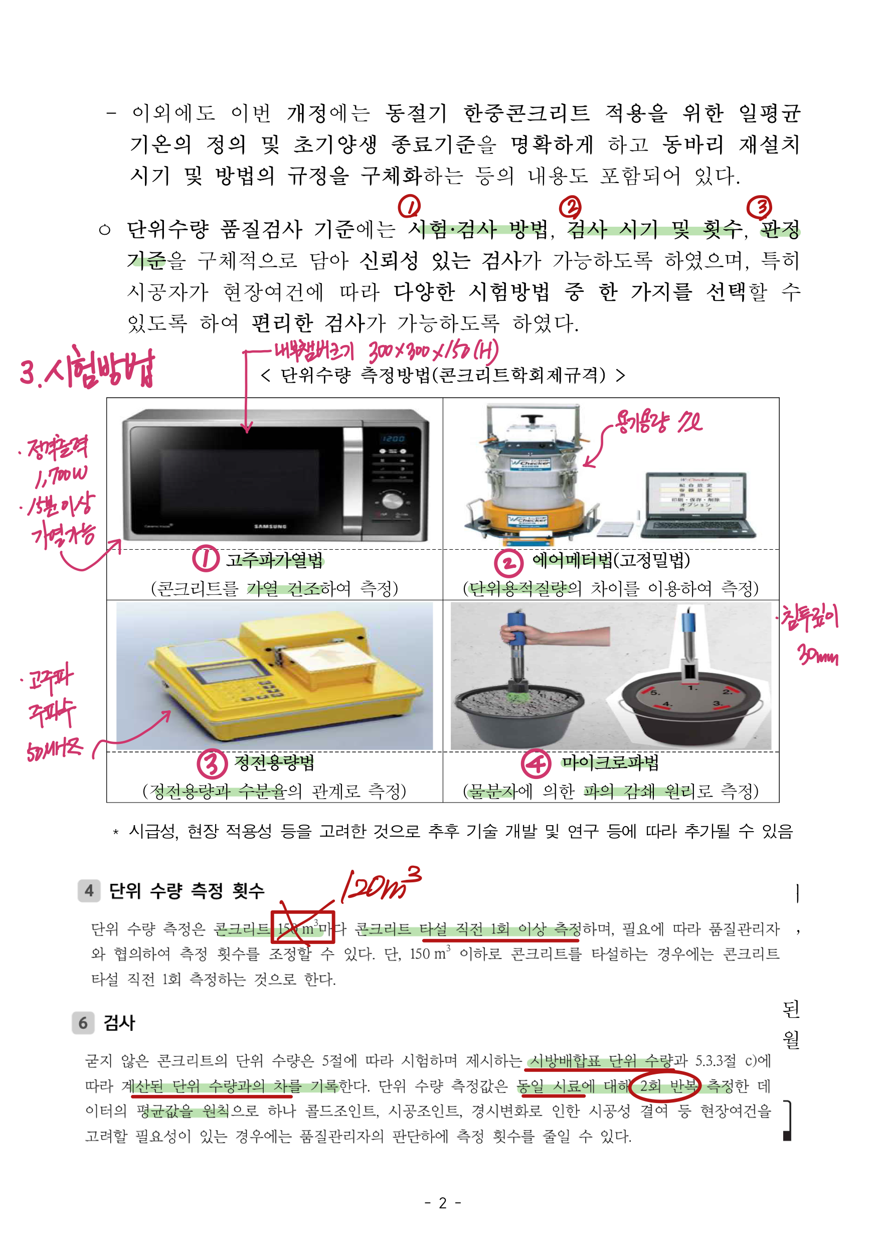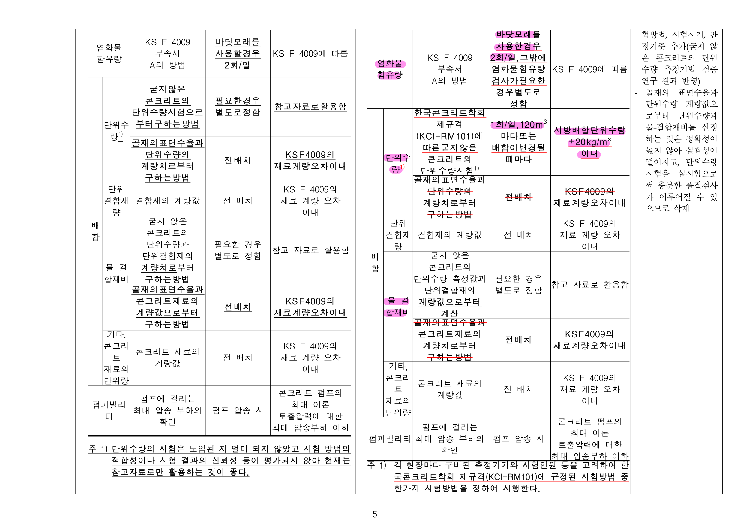 1) 굳지 않은 콘크리트의 단위수량 시험 규정 의무화