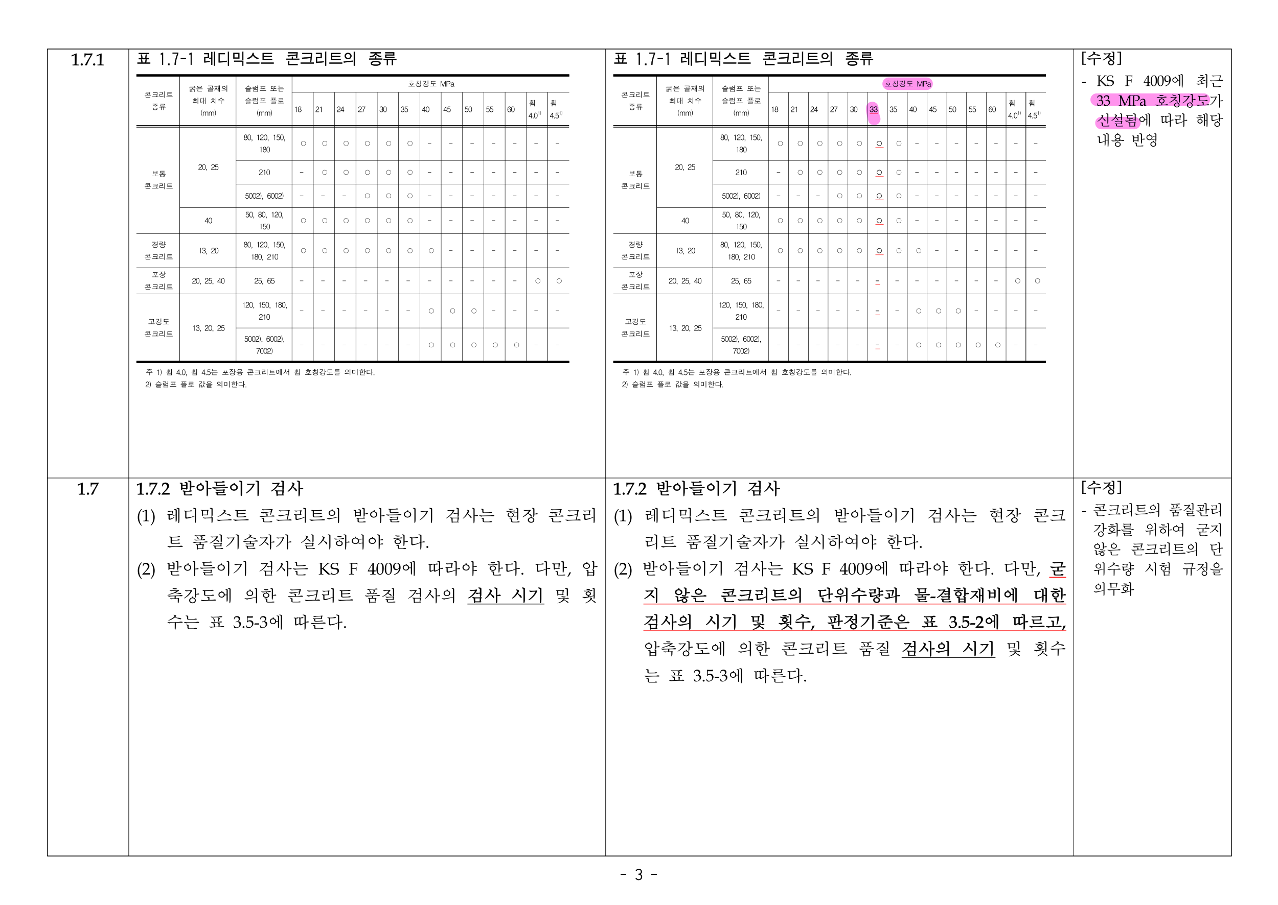 '22년 개정된 콘크리트 공사 표준시방서 개정에는 본 내용 이외에도 아래와 같은 개정사항이 있습니다. 참고 바랍니다.