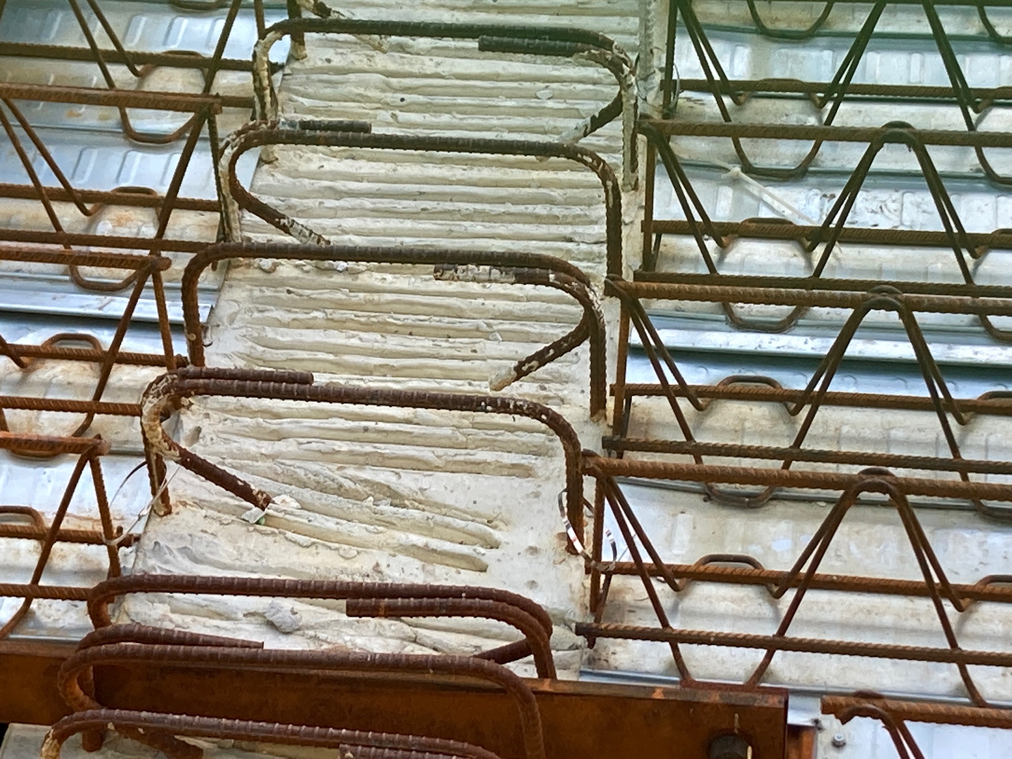 - 데크플레이트 하부 RC보 접하부(각재)가 상부하중을 견디지 못하고 탈락