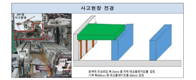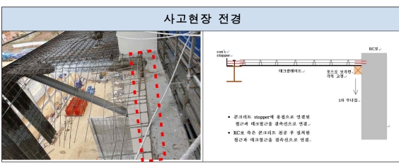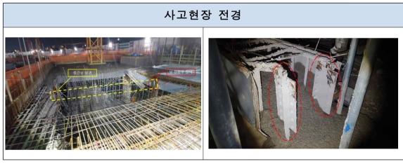 - 데크플레이트의 직접 붕괴보다는 데크플레이트를 지지하는 보 및 동바리가 콘크리트 타설 하중을 견디지 못해 사고가 발생