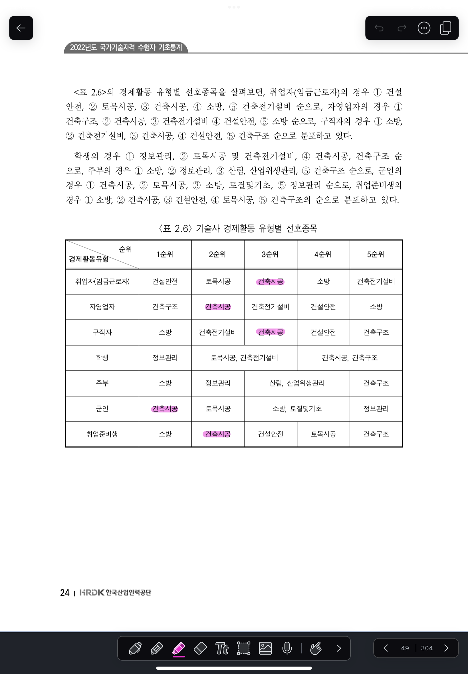 2) 건축시공기술사 경제활동 유형별 선호종목