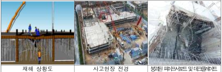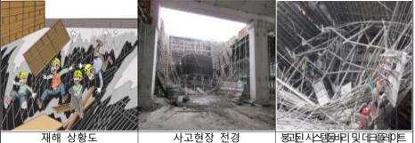 → 목재각재가 붕괴 당시 콘크리트 타설 하중을 견디지 못하고 탈락하여 붕괴 발생
