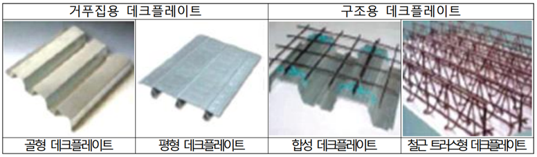 - 아연도금 강판, 선재 등 강재류를 요철 가공한 것으로 바닥구조에 사용하는 성형된 판