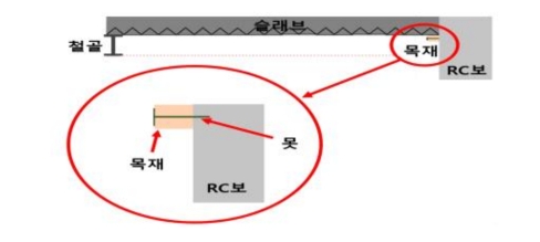 4) 시공 오차 등으로 데크플레이트 걸침 길이 부족현상 발생
