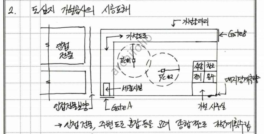 - 공사표지판 및 현장 내외부 폐쇄, 가설도로, 주차장, 현장사무소, 현장시험실